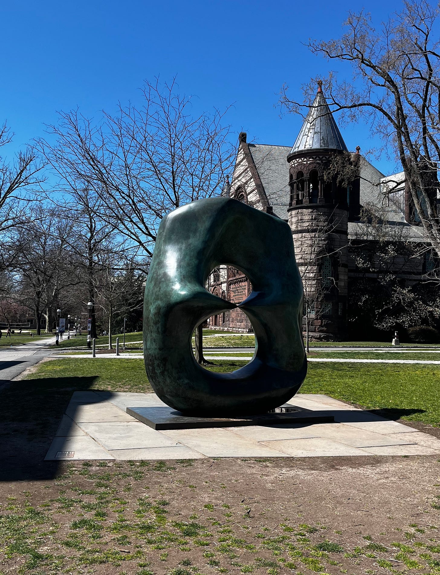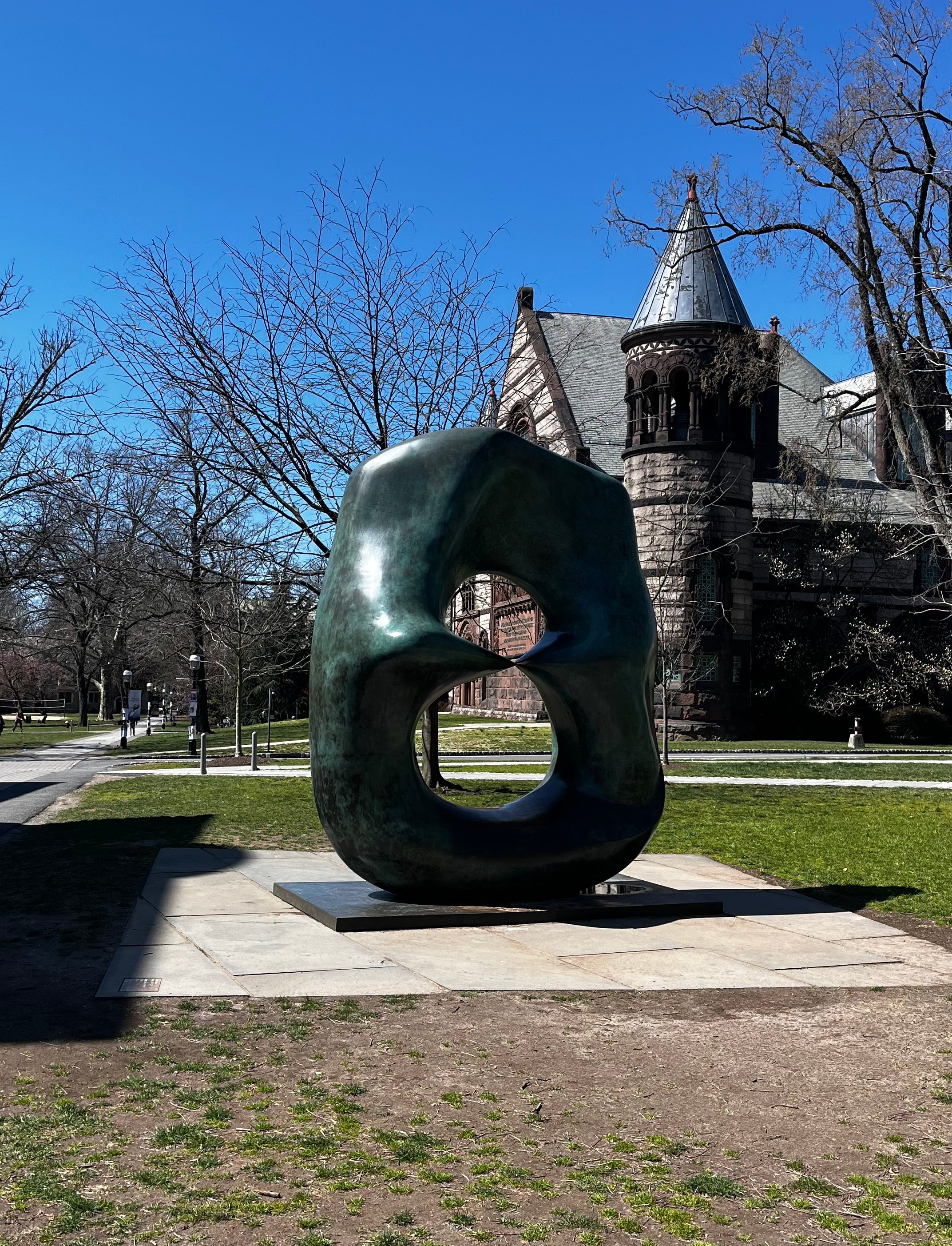 I first encountered one of Moore’s sculptures, Oval with Points (1969-70), in Princeton, New Jersey. The giant oxidizing figure 8 was hard to miss. It appeared again in a museum I visited (the Art Gallery of Ontario) in Toronto, Canada. This one is a working model, notably much smaller and white.